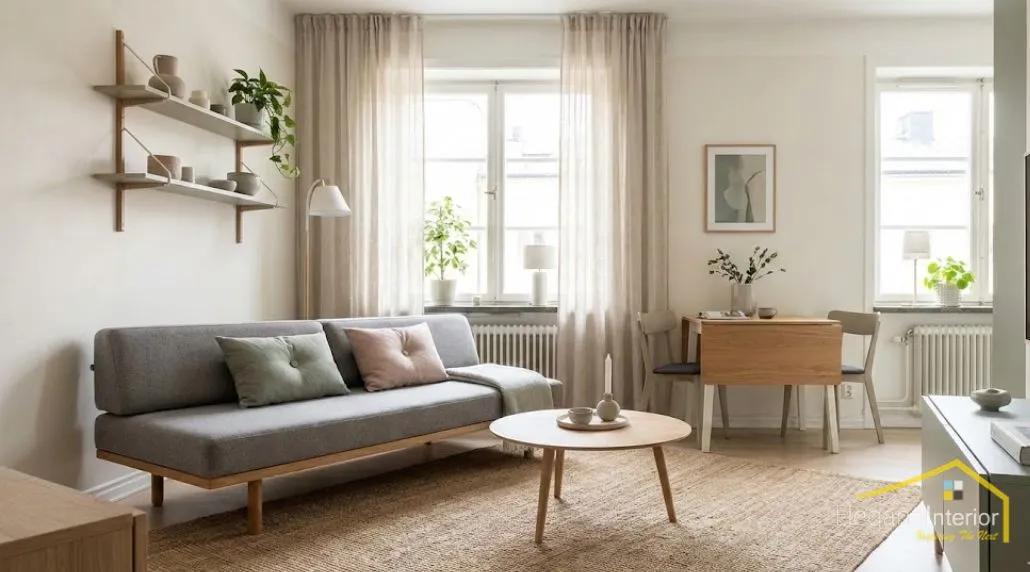 Scandinavian design mainly uses soft, neutral colors that can instantly make a compact space look bigger. Warm white, soft grey, creamy beige, and muted pastels such as sage, blush, and dusty blue are attractive colors that reflect natural light and give a calming appearance in small urban flats.